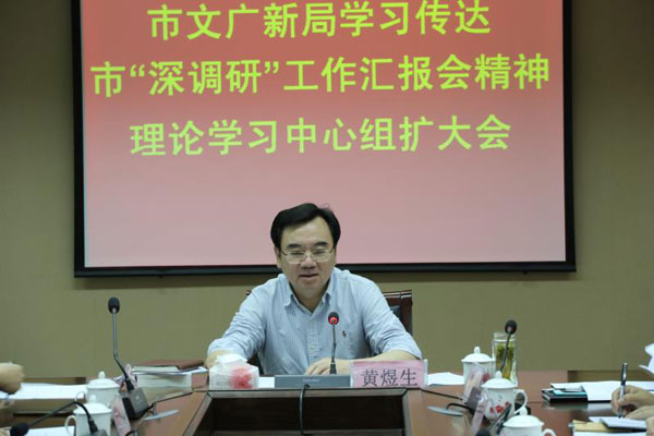 13日上午,市文广新局召开党组扩大会,传达学习全市“深调研”工作汇报会精神,研究部署做好贯彻落实工作。会议强调,全市文化系统要提高政治站位,全面深入学习领会全市“深调研”工作汇报会精神实质,按照方利旭书记提出的“深刻认识自我、努力提升自我、不断超越自我”的要求,坚持问题导向、坚持求真务实、坚持改革创新,认清定位、找准方向、理清思路,努力推动我市文化广电新闻出版工作创新发展,为汕头加快全面振兴协调发展、打造省域副中心城市提供强有力文化支撑。