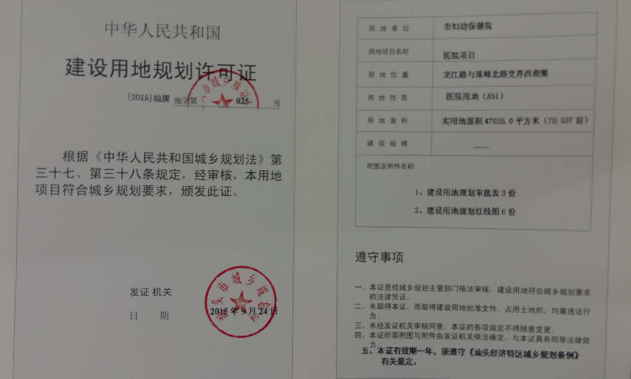根据《中华人民共和国城乡规划法》第三十八条规定,经审核,本用地项目符合城乡规划要求,颁发此证:
