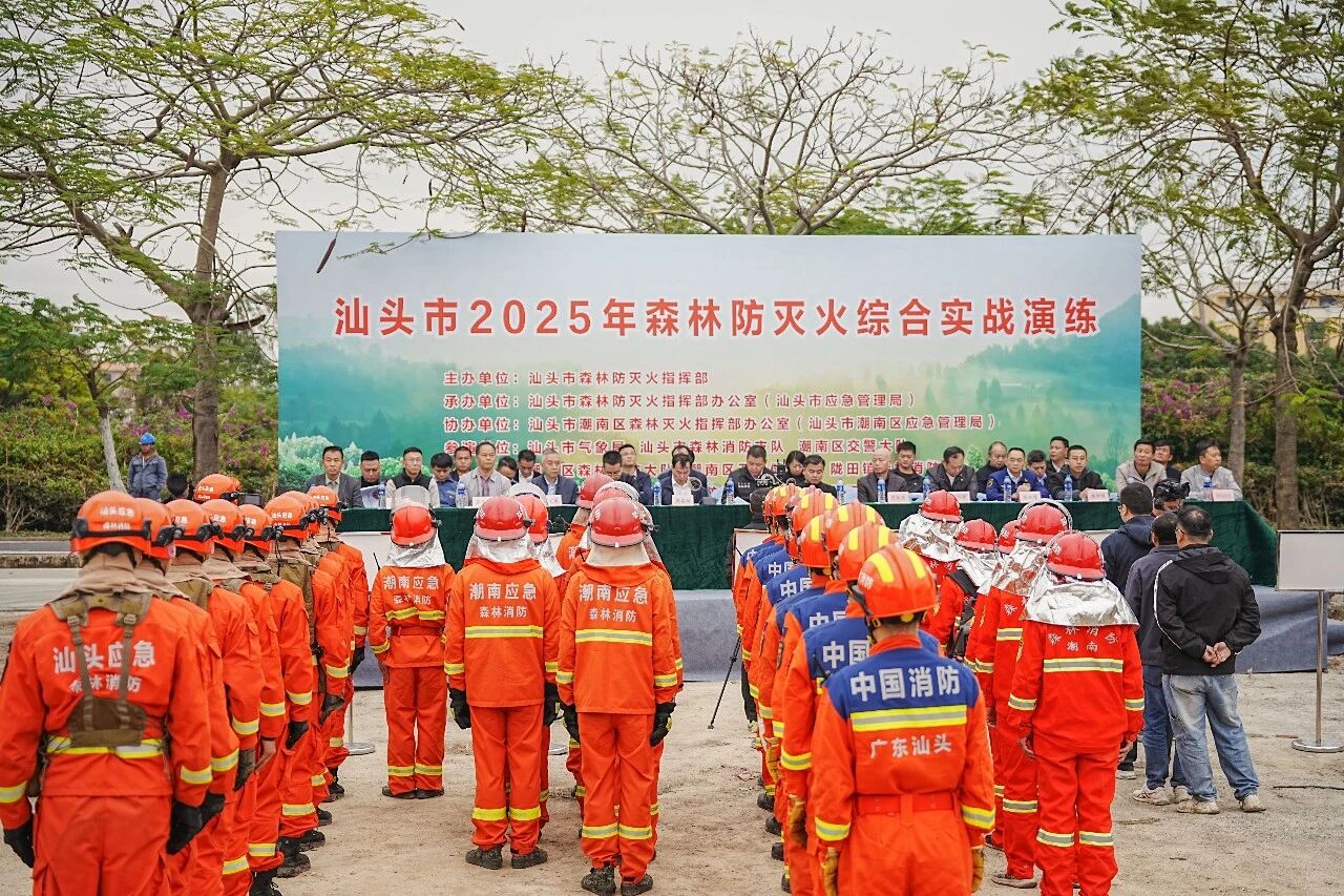 为检验今年新修订的《汕头市森林火灾应急预案》可行性和各级各部门森林防灭火应急响应速度,提高现场指挥临机决策能力,12月25日下午,汕头市森林防灭火指挥部在潮南区陇田镇南河公园举行“汕头市2025年森林防灭火综合实战演练”活动,展示我市“空天地一体、以水灭火”森林防灭火一体化新质能力建设成果,强化应急队伍协调联动处置能力。