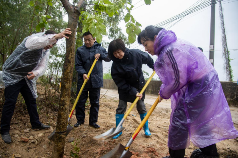 在潮阳区城南街道口美社区,党员干部三五一组、分工明确、热情高昂、干劲十足,大家齐心协力扶树正苗、挥揪铲土、浇水灌溉,共同建设青山常在、碧水长流、生态宜居的美丽幸福家园。经过共同努力,新栽树木迎风而立、整齐划一,焕发出盎然生机,为绿美城南增加了一条靓丽风景线。此次活动充分展现了党员先锋模范作用,激发党员干部服务群众、为绿美汕头贡献力量的热情,进一步增强了党组织的战斗力和凝聚力。