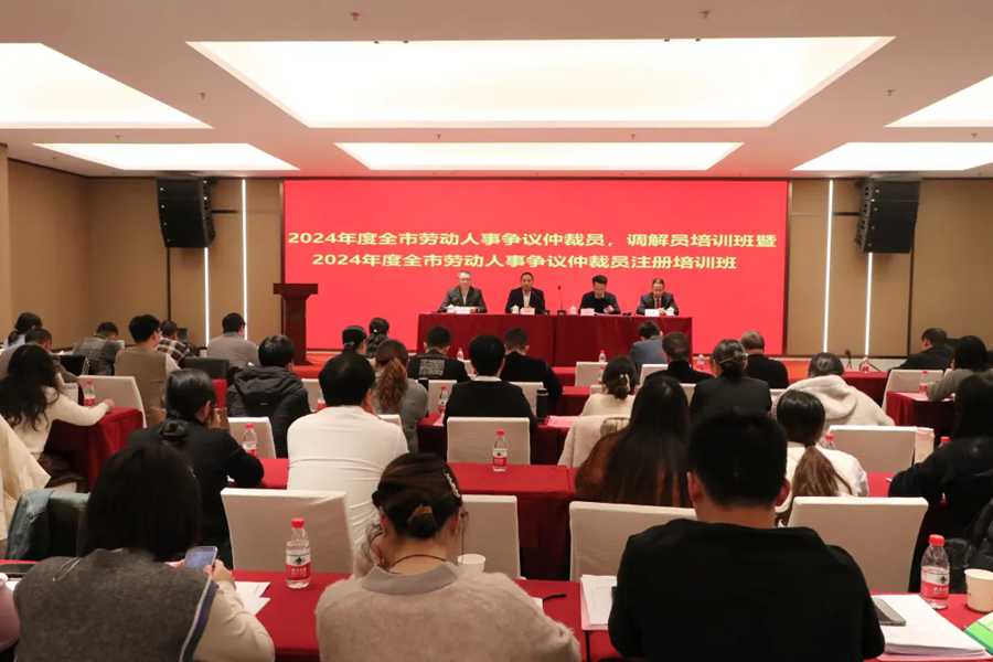 为进一步提高全市劳动争议调解员整体素质,提升调解质效,推进和谐劳动关系高质量发展。近日,汕头市人力资源和社会保障局举行2024年度劳动人事仲裁员注册培训暨调解员培训班。来自全市仲裁员及调解员,市劳务派遣协会,市超市供应链行业协会、市快递协会成员单位、企业人力资源专员共270人参加培训。