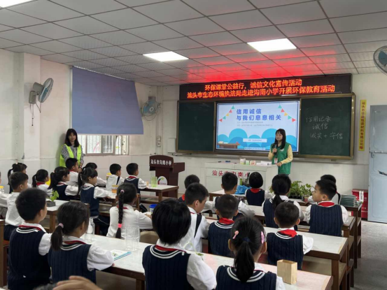 为落实社会主义核心价值观,做好生态环境诚信文化宣传活动,进一步提高全社会诚信意识和信用水平,营造守信光荣、失信可耻的浓厚氛围,使诚实守信成为全民的自觉行为规范,让诚信宣传入眼入心,培育践行社会主义核心价值观,使信用价值标准成为基本的衡量尺度,2023年4月26日,汕头市生态环境保护综合执法局在金平区沟南小学开展诚信文化“进校园”宣传活动。