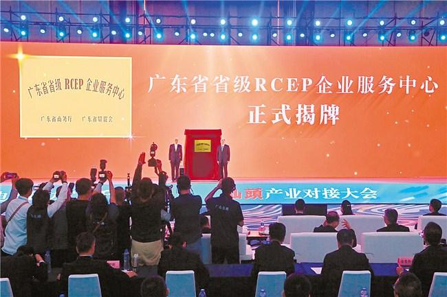 在跨境电商助力“百千万工程”汕头产业对接大会上,汕头市综保区“广东省省级RCEP企业服务中心”举行揭牌仪式。该省级RCEP企业服务中心正式落户汕头后,将为企业提供政策咨询、通关便利等“一站式”服务,助力开拓东南亚市场。