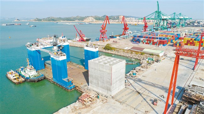 我市全力加快推进港口“头号工程”建设。近期,广澳港区二期58个大型沉箱全部完成浇筑预制,预计到明年1月将完成安装,为推进十万吨级码头主体结构建设夯实基础、提供保障。目前,广澳港区二期两个10万吨级集装箱泊位累计完成投资11.7亿元、占比40.7%。广澳港区航道二期累计完成投资0.67亿元、占比29.8%。航道疏浚施工加快推进。广澳港区三期3个5至10万吨级通用泊位完成工可审查项目备案。广澳防波堤累计完成投资15.8亿元、占比96.8%。据统计,前三季度,港口建设完成投资6.88亿元。