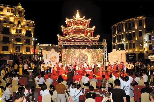 晚会现场,金龙教育集团的小学生们表演潮州大锣鼓《画眉跳架》,随后,潮汕歌册、英歌舞、武术表演等节目轮番登场,展现潮汕本土文化和中国传统文化融合的新风采。《灯火里的中国》,满载着鮀城人民对祖国的美好祝福和对未来的欣然向往;古筝曲《月儿高》与皓洁明月相互映衬,表达月圆人圆的美好祝愿。市民游客或围坐圆桌,或驻足观赏,在喜庆祥和的节日氛围中领略潮汕传统文化的独特魅力。