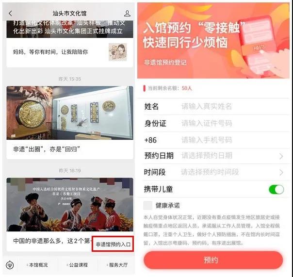 1、个人或团队参观均需提前一天预约(团队所有参观者均需单独预约),通过“汕头市文化馆”微信公众号菜单栏“服务大厅-非