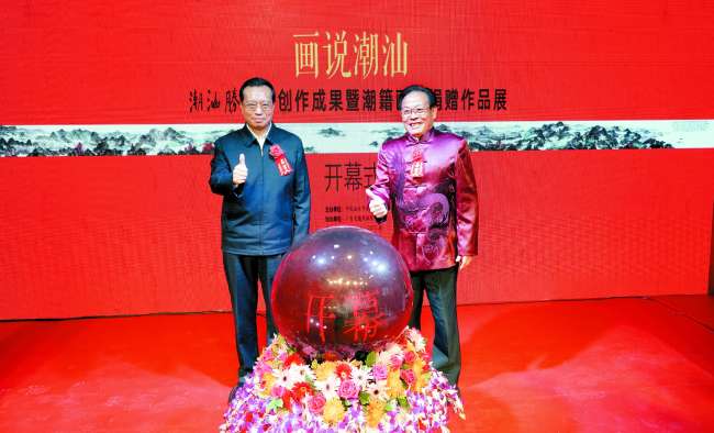 省委原副书记、省潮联会会长蔡东士和市委书记陈良贤共同为展览点亮启动球。中国美协副主席、省文联主席许钦松及《潮汕胜景图》主创画家代表黄战生分别致辞。展览开幕式由市委常委、宣传部部长周镇松主持。开幕式后还举办了《潮汕胜景图》创作成果研讨会。