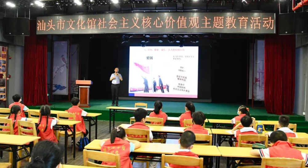 课堂上,汕头市文化馆副馆长陈少冰还为孩子们进行了社会主义核心价值观主题教育。