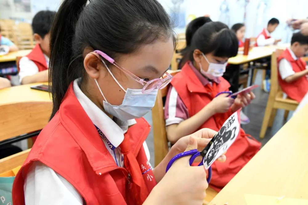 ▲红纸剪刀,孩子们沉浸在自己的剪纸世界里,从红纸到成品,满满的成就感!