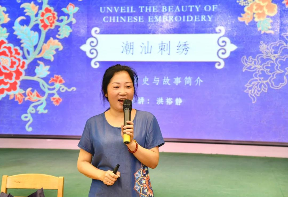 ▲非遗传承人介绍了潮绣的由来、历史,并亲自指导潮绣的基本绣法。孩子们用他们刚学到的技艺绣出一幅幅充满生命力的作品。