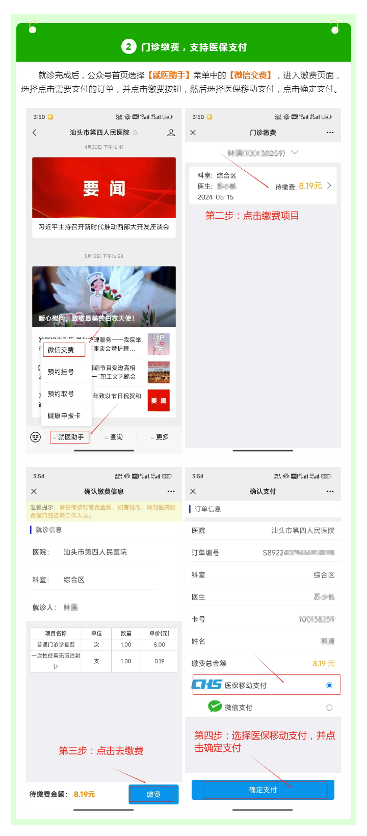 汕头市第四人民医院微信“医保移动支付”全面上线