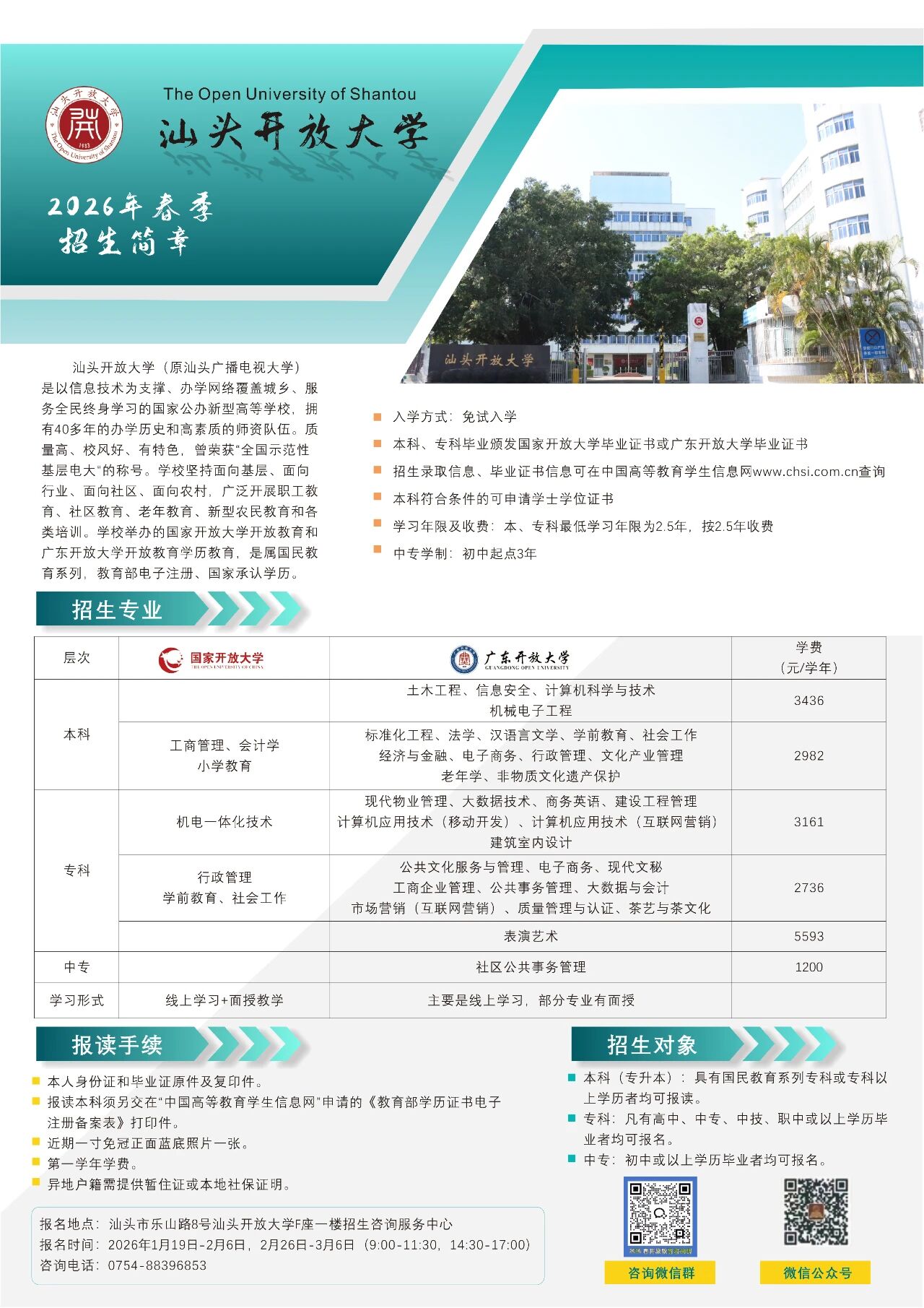 汕头市乐山路8号汕头开放大学F座一楼招生咨询服务中心