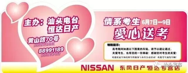 为方便广大考生提前安排爱心送考车辆,考生可拨打咨询联系电话:0754-87266774、13592892920、13692006336进行预约,希望有更多的车主加入到志愿者队伍中来。”