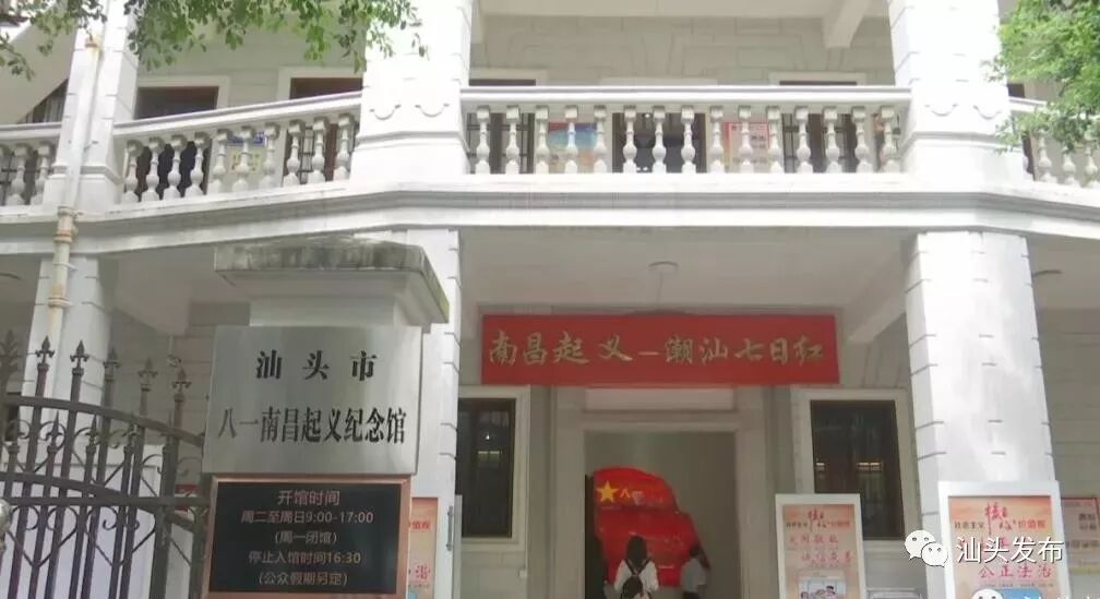 从外马路转入民权路,老记来到民权路50号的大埔会馆。该建筑建于1926年,现为“汕头市八一南昌起义纪念馆”。这是一处与重大历史事件和重要人物有关的革命旧址。1927年8月1日南昌起义后,主力部队在周恩来、朱德、贺龙、叶挺等同志的率领下,向广东进发,进入潮汕前后共七天,在潮汕革命史上称之为“七日红”。同时,在“大埔会馆”设立“南昌起义南下部队总指挥部” ,周恩来等革命领导人在这里共商一系列重大军事、政治决策,协同地方党委建立工农政权。