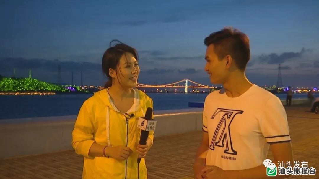 主持人欣盈:“今天‘寻梦之旅’的第一站,我收获一个非常浪漫的爱情之梦。当然我们的寻梦之旅还没有结束,这几年汕头内海湾两岸的发展可以说是日新月异,所以下来我们继续来寻找梦幻般的美景,特别是璀璨的汕头内海湾两岸的夜景。”
