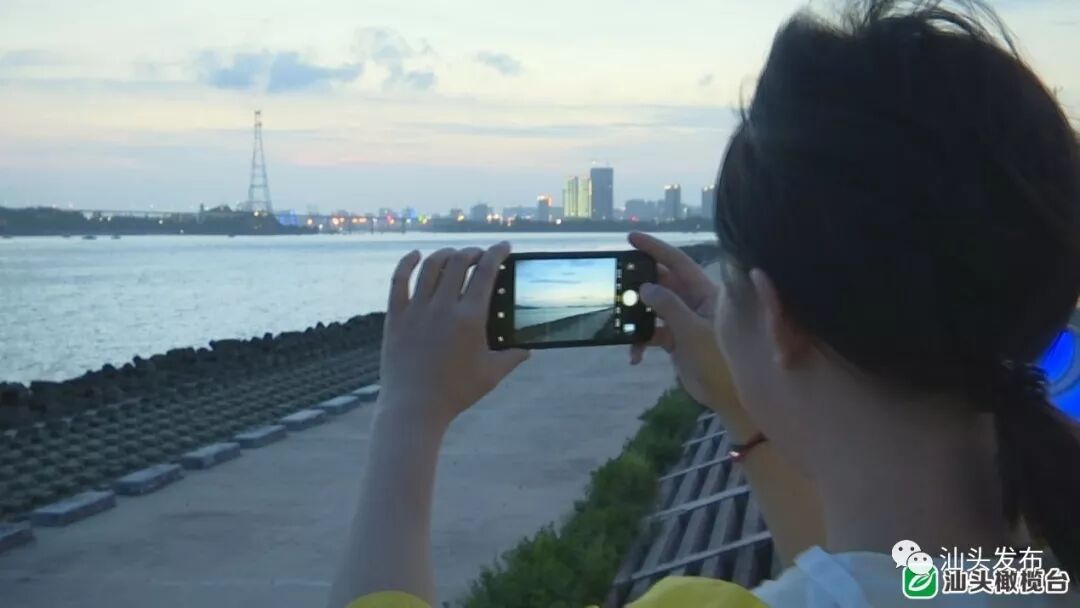 主持人欣盈:“东海岸确实是一个非常美丽的地方,现在我来到东海岸堤顶,你看远处就是落日和海湾大桥。然后吹着这么凉爽的海风,似乎整天的疲劳都被风吹走。直到现在我才明白,为什么这几年人们总是说来汕头游玩一定要来东海岸,确实这里有其独特的魅力。”
