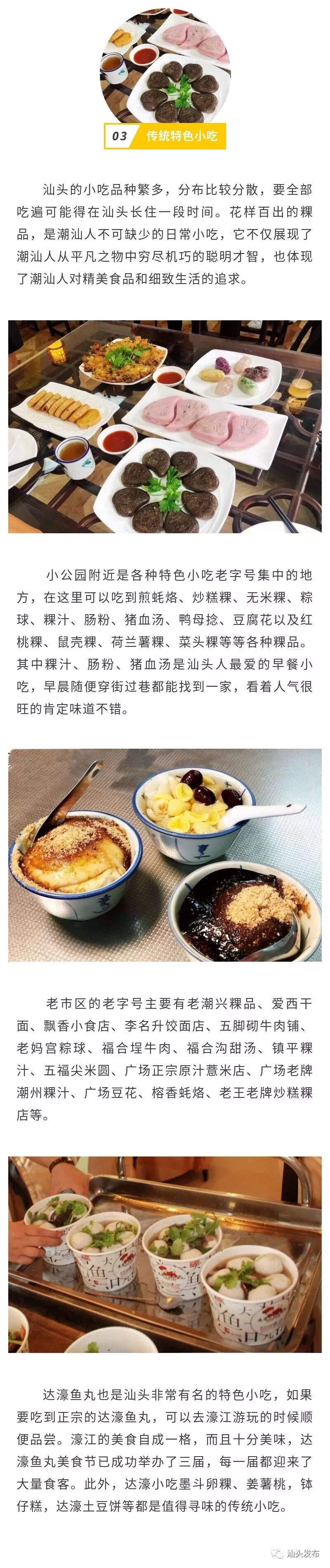 汕头最不缺美食。花样百出的美味背后,不仅蕴藏着味欲其鲜、趣欲其真的饮食文化,还沉淀着百年传承的厚重历史。来汕头旅游吧,相信这里的美食和美景定会让你念念不忘,回味无穷。