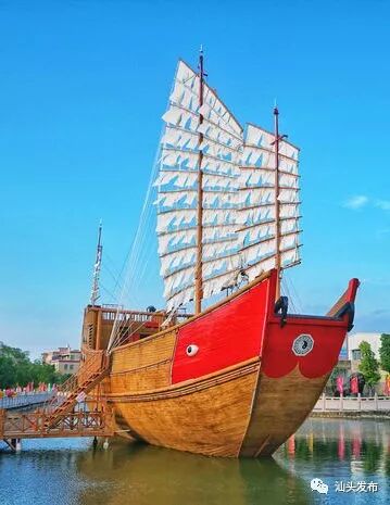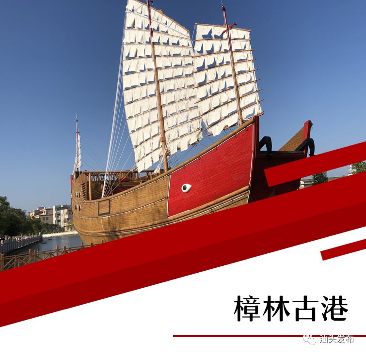 如今停靠在古港河口的仿真红头船,就是按照史料记载的比例设计建造,为古港新标志性景观。该景观红头船长25米,三桅,中间船桅高16米,船体最宽处7.2米,做二层设计。红头船以水泥基座承接固定船体底部,位于古港河水面下方约七十厘米。全船以不锈钢结构为骨架,外部包裹芬兰实木板材,船体部分延伸至水下,确保在古港河枯水期依然呈现完美的木质船体外观。古港河景观红头船的建成亮相,充实了樟林古港历史文化内涵,彰显本土历史文化价值。