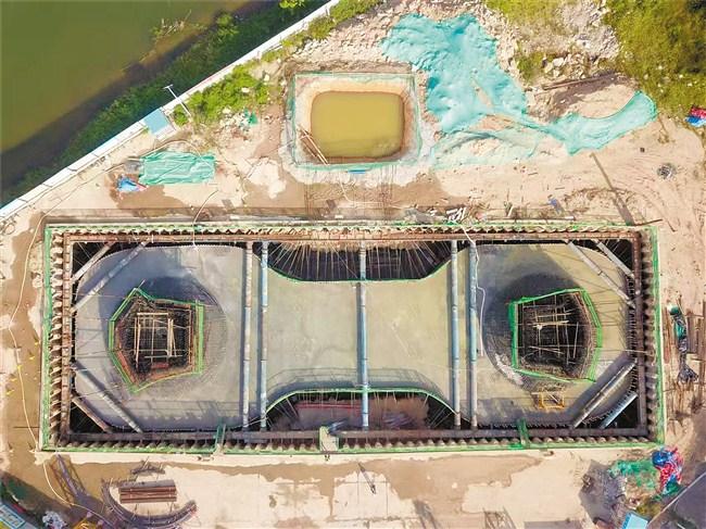 (潮汕大桥主桥控制性工程之一的主塔承台浇筑完成。)