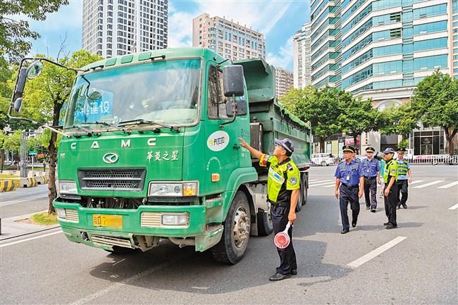 (我市持续开展“泥头车”联合执法行动。 记者 林鹏 摄)