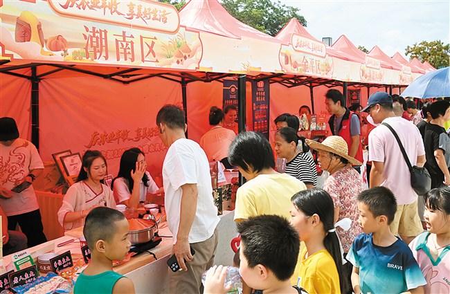 本次丰收节是展现“三农”工作成果、记录历史性成就、凝聚奋进力量的重要平台。现场重点打造的汕头市“百千万工程”三年初见成效成果展,从产业发展、人居环境、社会治理、体制机制改革、社会力量参与等多维度,展示3年来六区一县在“百千万工程”与乡村振兴建设中取得的综合成效。今年上半年,汕头农村居民人均可支配收入13605元,同比增长5.5%;夏收水稻产量15.66万吨;农村生活污水和垃圾无害化处理率均达100%;近40亿元各类资金投入,为乡村振兴提供坚实支撑。接下来,汕头将持续聚焦“媒体+市场+产业+品牌”,对接“广东省农产品采购商联盟”“粤品出海”“南品北上”等平台,多维度开拓粤港澳大湾区、长三角及亚欧美等国内外市场,全方位推动特色农产品“走全球、卖全球”,持续扩大农产品国际影响力,助力“百千万工程”走深走实。