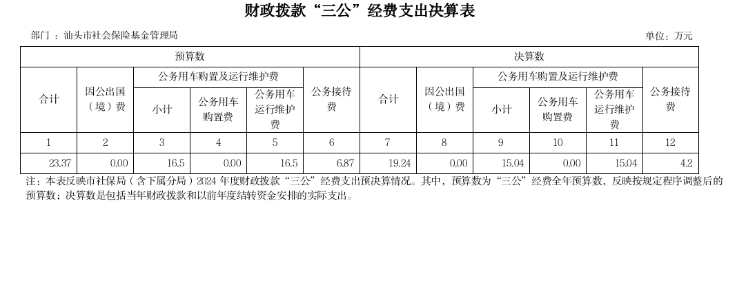 2024年汕头市社会保险基金管理局财政拨款三公经费支出决算表