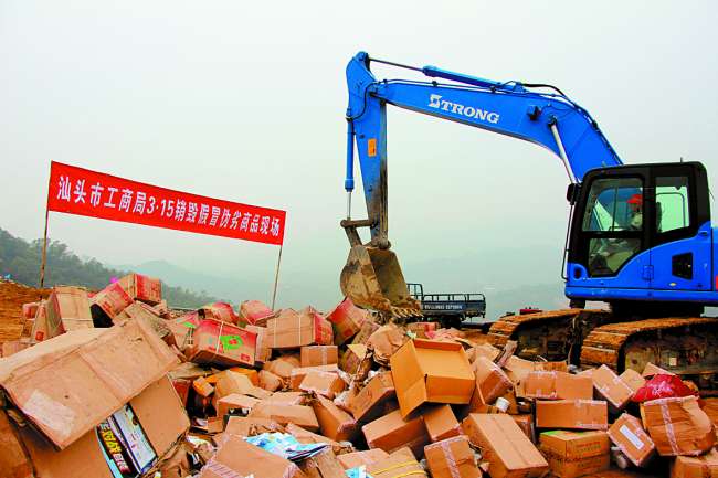 在3·15国际消费者权益保护日即将来临之际,市工商局在鮀浦填埋场开展罚没物资现场销毁活动,对2014年至2016年以来市局经检支队查处没收的不合格、假冒伪劣商品进行销毁。