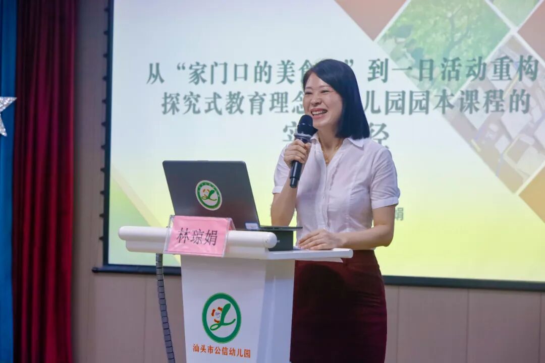 三场深度经验分享从不同视角诠释了课程建设的汕头实践路径。林琼娟园长的分享展示了生活化课程的创新实践,并深入阐述了以“生活观察—问题生发—探究实践—经验迁移”为课程转化路径;黄津园长聚焦课程实施的平衡艺术,分享“基础课程标准化实施+特色课程个性化开发”的双轨策略的落地。吴丽虹园长提出“四维联动”课程建构模型,清晰勾勒出园本课程“从理念到实践”的完整脉络。