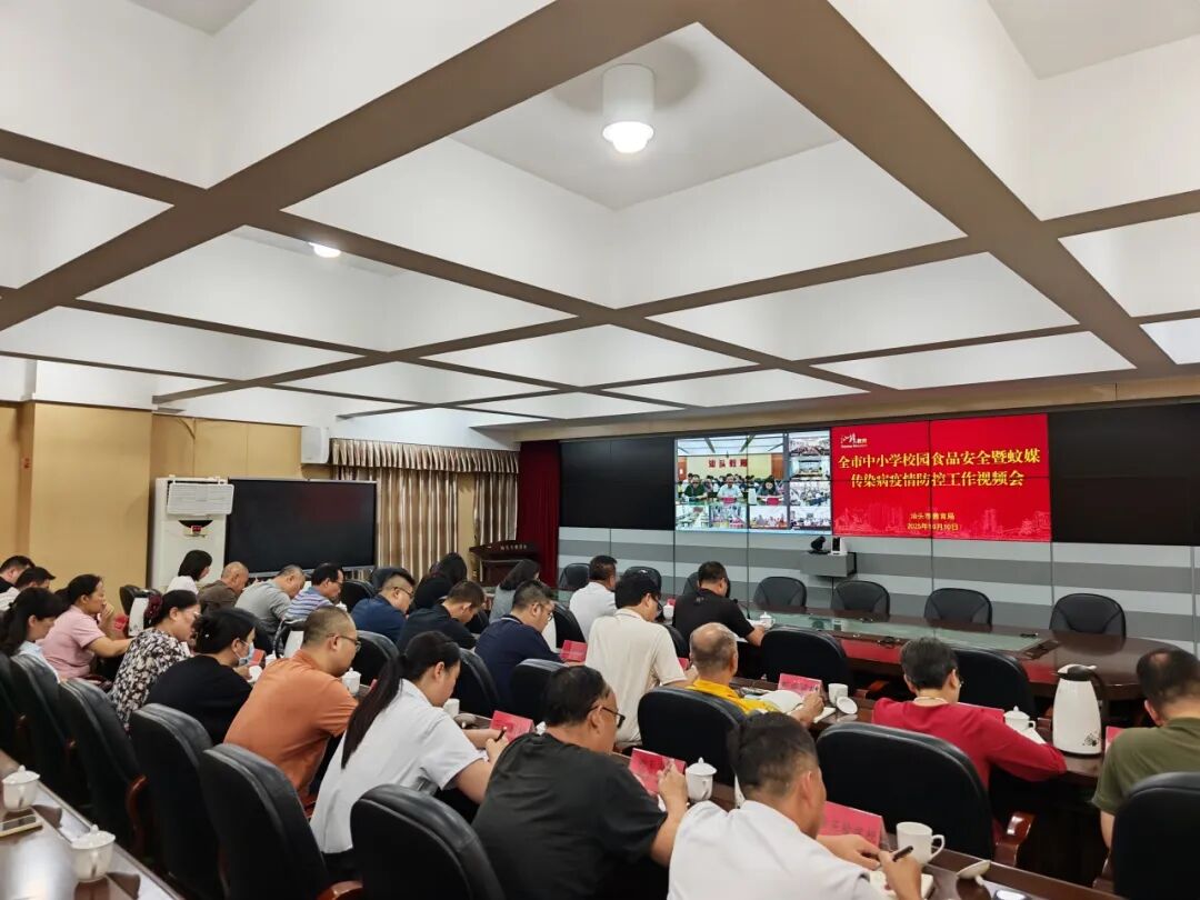为持续做好我市校园食品安全工作和基孔肯雅热和登革热等蚊媒传染病疫情防控工作,10月10日下午,汕头市教育局召开中小学校园食品安全暨蚊媒传染病疫情防控工作会议。会议以视频会议形式召开,在市教育局设主会场,各区(县)教育局设分会场,全市各级教育行政部门有关领导和业务科室负责人、全市中小学校(含幼儿园)有关校领导参加会议。