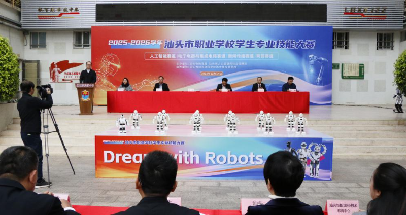 2025年12月14日上午,由汕头市教育局、汕头市人力资源和社会保障局主办的2025—2026学年汕头市职业学校学生专业技能大赛在汕头市林百欣科学技术中等专业学校隆重开幕。市教育局、市人力资源社会保障局分管领导及有关科室负责人,各职业院校校领导,来自全市15所职业院校近200名技能参赛选手、指导老师、裁判员等共同参加开幕式。