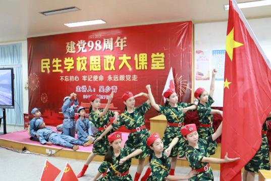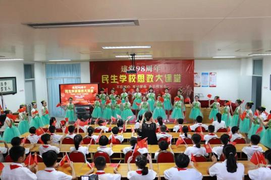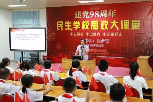 6月27日下午,达濠民生学校在三楼阶梯教室举行庆祝建党98周年思政大课堂活动。学校师生代表近200人参加活动。