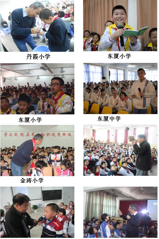 “科学家走进汕头校园讲科学”主题教育活动自2013年12月24日在汕头市东厦中学拉开序幕,连续5天,分别在汕头一中、东厦中学、蓬鸥中学、东厦小学、南澳后宅中心小学等14个中小学进行。本期活动邀请了中国科学院的地球物理科学家白武明教授、载人航天工程应用系统科学家张厚英教授和核物理科学家陈贺能教授三人到汕头开展“科学家走进汕头校园讲科学” 科普报告。报告主题包括“地震、火山和活动的地球”、“嫦娥探月,神舟华彩——中国载人航天工程应用纪实”、“科技为我们带来美好生活”等,有近1万名学生、老师及家长代表近距离的聆听了科学家们精彩报告,科学家用深入浅出、风趣幽默加上现场小实验的授课方式,向学生们阐述了高端的科学知识,让学生们体验到科技的奥秘,感受到“科学无处不在”,同时也激发了同学们对科学的无限渴望和对科学知识强烈的求知欲。现场孩子们提出很多奇思“异”想,他们提出“恐龙不是灭绝了,是变种了”、“随着大陆漂移,什么时候我们的五大洲中会有哪一个州沉没了”、“我们的航天飞船回到地球,会给地球带来污染吗”等等疑问,每个学校的报告厅,都成为学生们快乐求学的欢乐海洋!