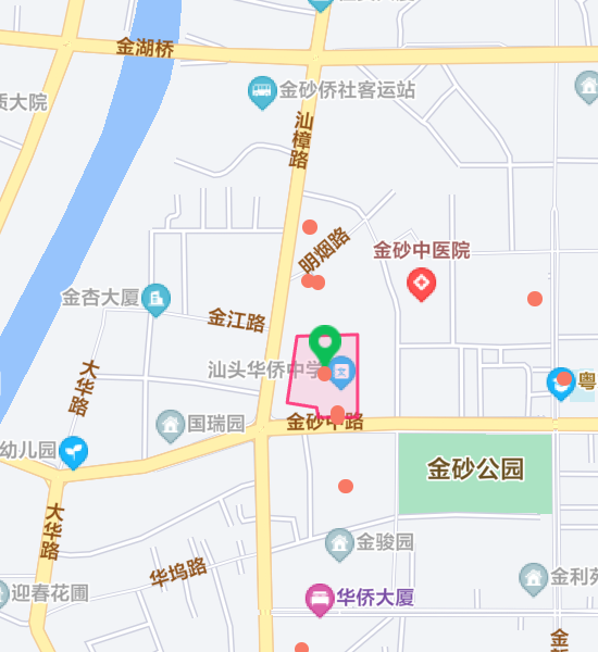 汕头华侨中学:乘坐2、4、6、11、16、26、33、37、38、47、53、101路公交车于金砂公园站下车,步行约3分钟到达。