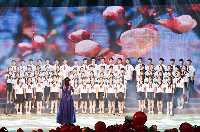 本次总决赛分为小学、初中、高中三场,来自我市各区县、市直属学校的4500多名中小学生同台歌唱。同学们以朝气蓬勃的精神风貌、热情洋溢的张张笑脸、悦耳动听的美妙和声为祖国母亲献上一首首深情款款的颂歌,呈现了一台台精彩的视听盛宴。活动在庄严、豪迈的国歌声中拉开帷幕,歌声如潮、深情涌动。同学们在《我爱你中国》《红旗颂》《爱国歌》的歌声中讴歌亲爱的祖国母亲;在《彩云追月》《城南送别》的歌声中弘扬中华优秀传统文化;在《乡音乡情》《大海啊故乡》《家》《瑶山夜歌》《梨花又开放》的歌声中表达浓郁爱国恋乡情怀;在《奉献》《母亲的微笑》《洒满人间的爱》的歌声中传递温馨的人间真情;在《My Song》《Come to the music》的歌声中展示青少年开阔的国际视野与胸怀;在《海阔天空》《平凡之路》《奉献》的歌声中放飞梦想;《祖国不会忘记》《中国人的宣言》《我爱你中国》《我和我的祖国》等一首首激奋人心的爱国歌曲在大剧院唱响,红色旋律飞扬,青春少年的心也随之激情豪迈。台上的同学们尽情抒发家国情怀、少年壮志,台下的领导、嘉宾及广大师生也热烈和声,大家以团结奋进的精神风貌,深情和谐的歌声倾诉心声,抒发对党、对祖国的无比热爱和对文明汕头的美好祝愿。雷鸣般的掌声在剧场阵阵响起。“我和我的祖国,一刻也不能分割,无论我走到哪里,都流出一首赞歌……”一曲《我和我的祖国》点燃了大家的激情,台上台下的师生纷纷起立高歌,汇成震撼人心的全场大合唱,管乐恢弘、舞蹈绚丽、歌声嘹亮,把活动推向了高潮。