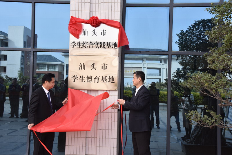 仪式由潮南区教育局局长马楚佳主持,市教育局副局长王溅波致辞,市教育局局长胡冬、潮南区委常委、统战部长陈大立为“汕头市学生综合实践基地”和“汕头市学生德育基地”揭牌。