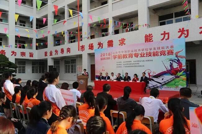 为进一步学习贯彻全国教育大会精神,深化产教融合、校企合作,展示我市中等职业教育教学成果,推进职业教育技能竞赛的制度化发展,11月24日,由汕头市教育局、汕头市职业与成人教育协会主办,汕头市鮀滨职业技术学校承办的2018 年汕头市中职学校学前教育专业技能竞赛在汕头市鮀滨职业技术学校(广厦校区)隆重举行。市教育局陈亦斌副局长、市职业与成人教育协会陈树耀副会长等出席了开幕式。