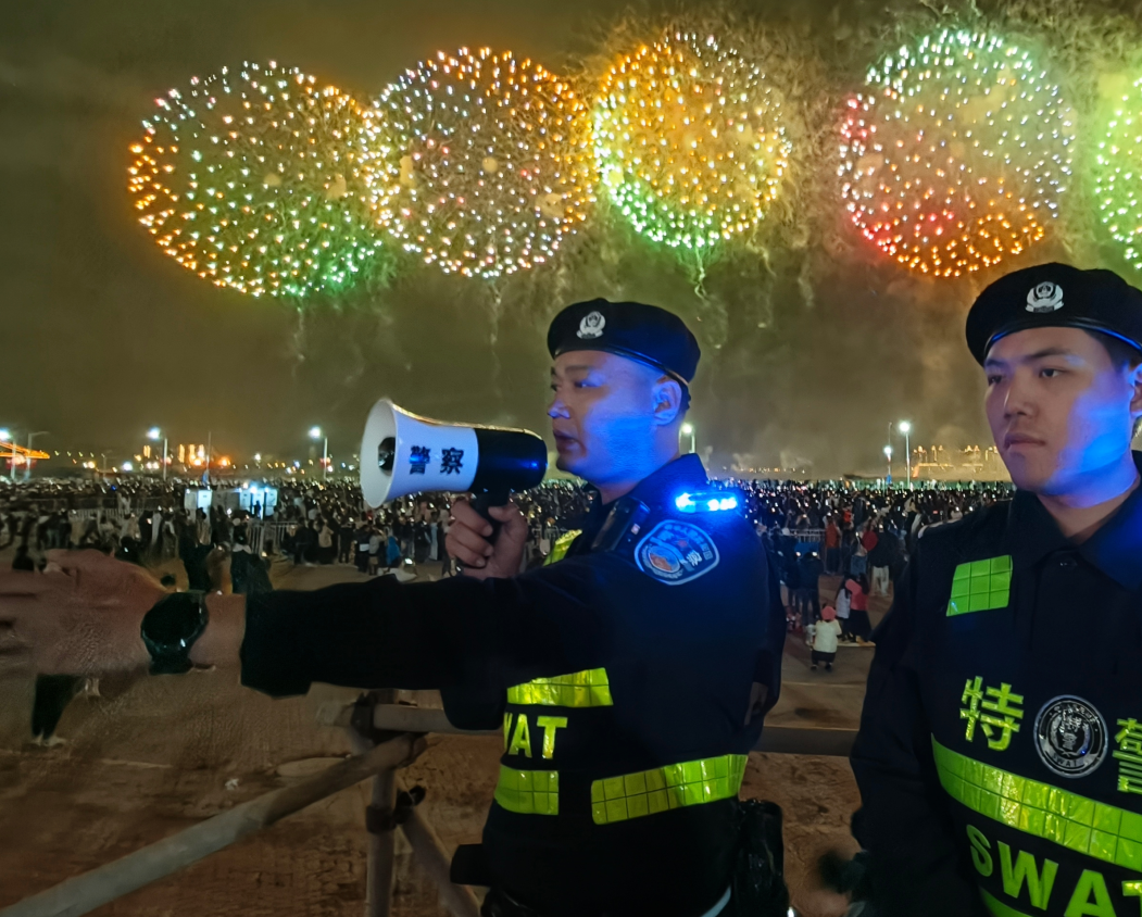 焰火璀璨的背后,是汕头公安全警动员、全程坚守的硬核担当。从前期精密部署到现场全维管控,从交通疏堵保畅到暖心便民服务,从城市面全域防控到水域空域严管严控,汕头公安用坚守与奉献,为这场全民共享的文旅盛宴筑牢了坚不可摧的平安防线,向全市人民、八方游客交出了一份护航城市发展、守护民生幸福的新春答卷。