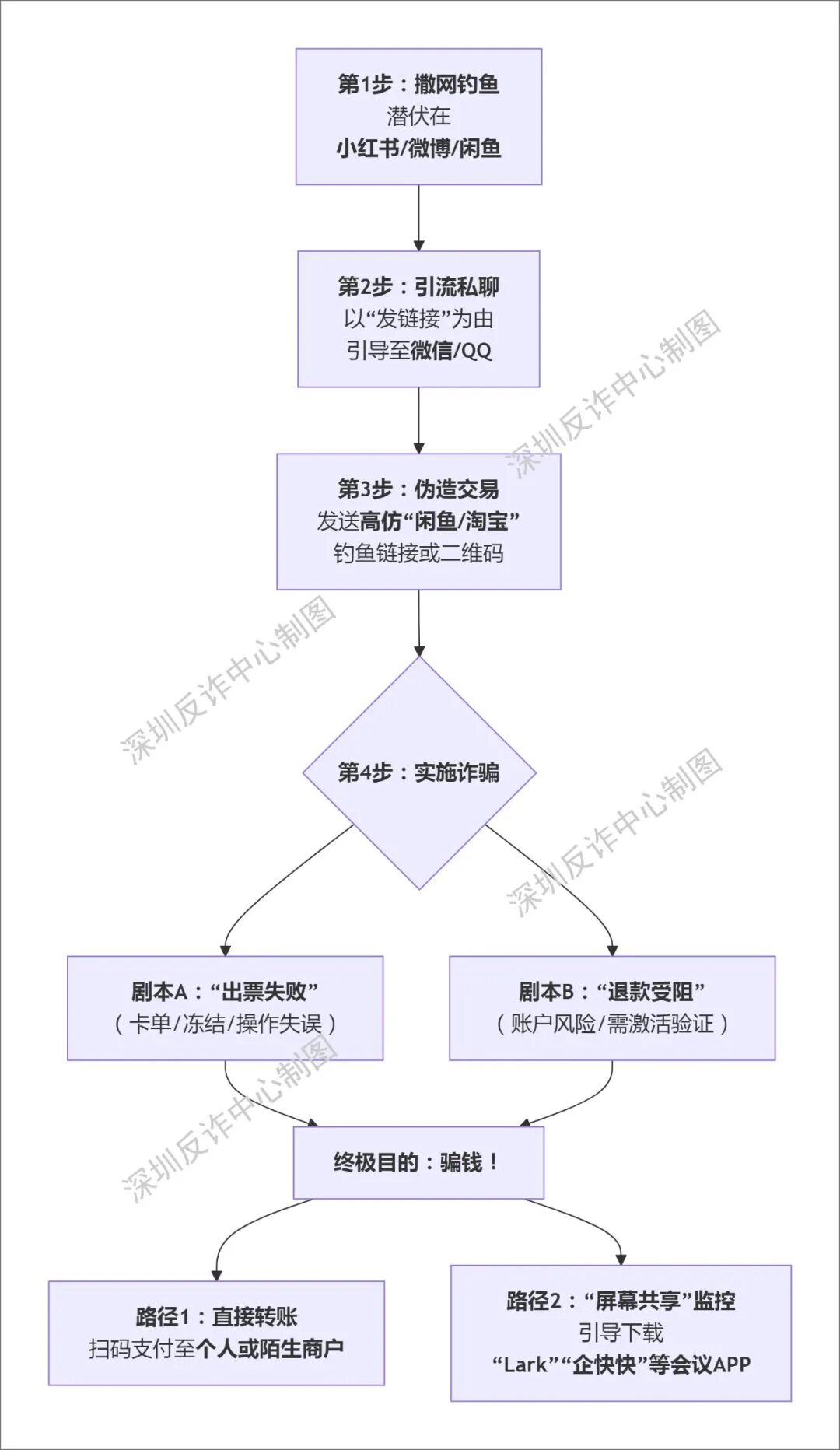 3.诱导转账:以“操作失误”、“账户冻结”、“需要激活退款”等为由,引导受害人下载“云会议”APP(如Lark、企快快),通过屏幕共享窃取信息,或直接扫码、转账至个人账户。