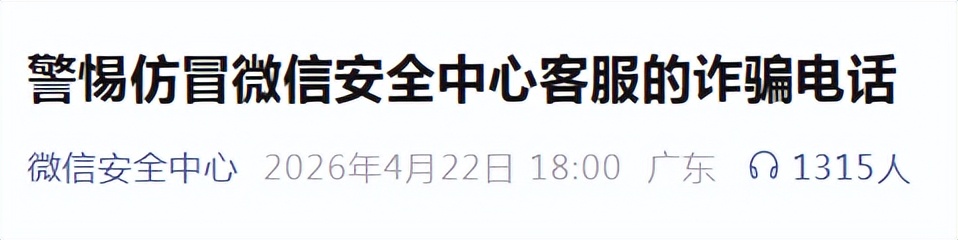 4月22日,“微信安全中心”微信公众号发布一则提醒,全文如下: