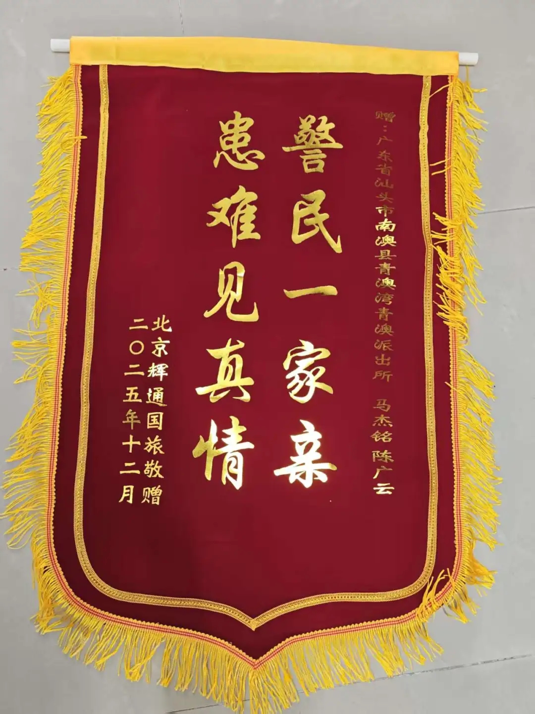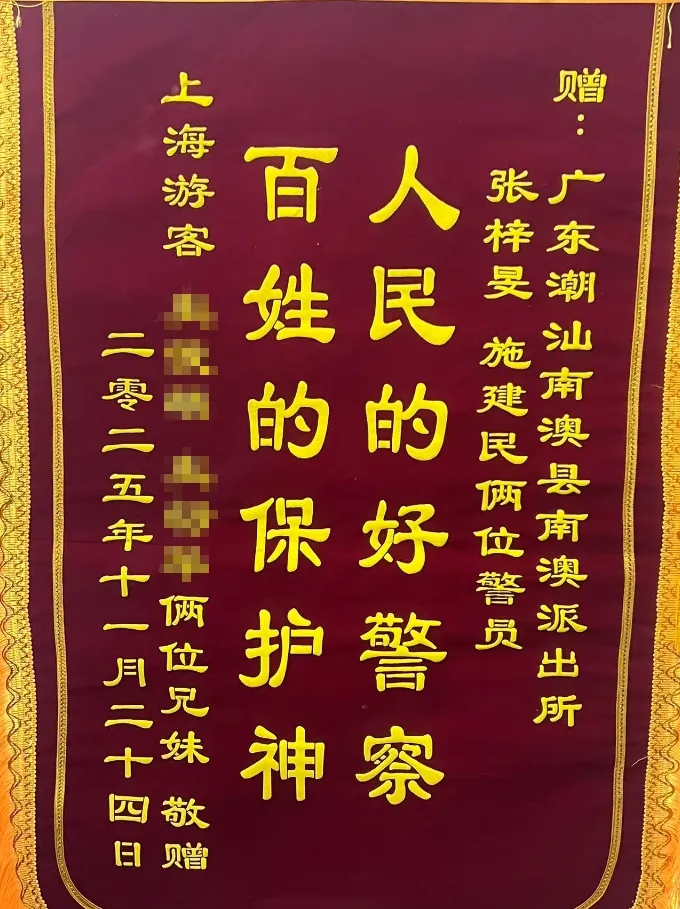 “这么晚还麻烦你们,有警察在太安心了!”家属赶到派出所时,紧紧握着民警的手不停道谢。事后,老人家属特意送来锦旗,说这面锦旗不仅是感谢,更是对汕头公安“守护团圆”的最好认可。