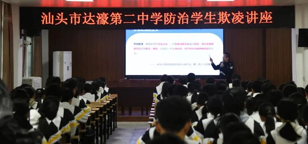近期,濠江分局组织民辅警先后走进三河中学、达濠第二中学,为师生们带来了干货满满的校园防欺凌课堂。