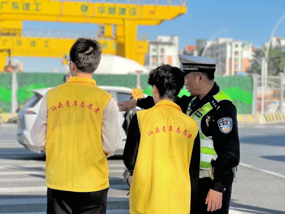 今天下午,汕头公安交管部门联合团市委、市众和志愿者协会,组织志愿者与刚刚放假的青年学生一同在中山金环路口、海滨金环路口开展交通安全宣传劝导活动。