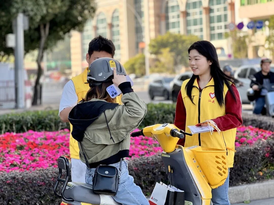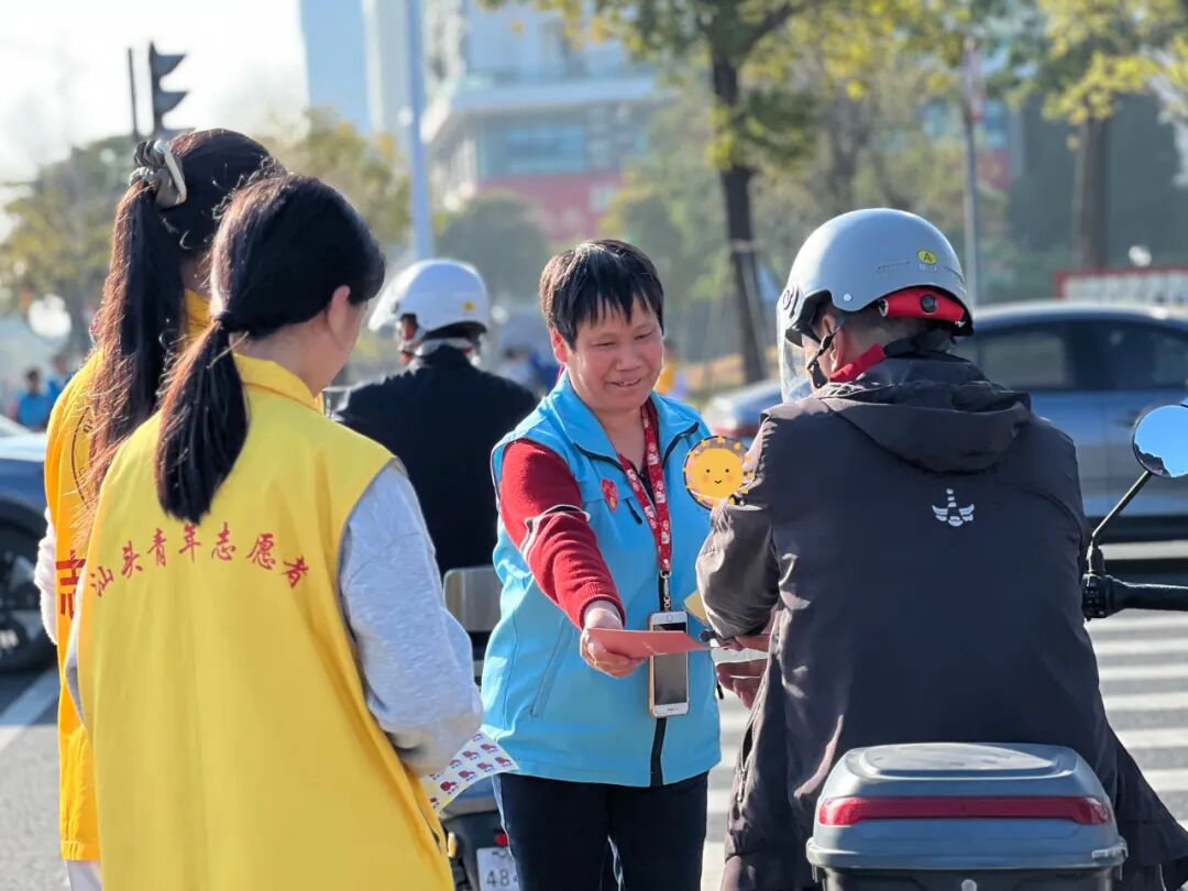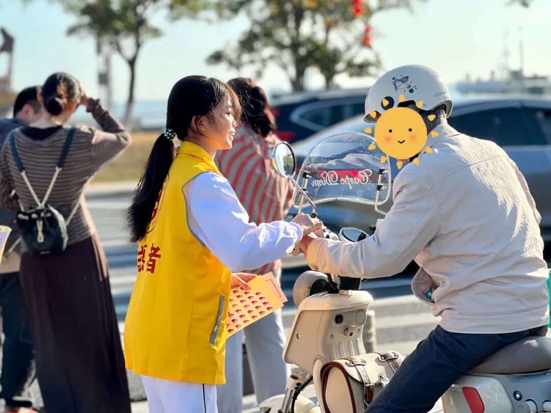 “骑电动自行车要佩戴头盔,还有要靠右骑行,和大型车辆保持安全距离。”在现场,执勤民警对有关骑行人员进行批评教育,指出其行为的危害性,并推广“早点走、靠右行、慢慢开”骑行理念。志愿者们则在民警的指挥下,为过往交通参与者分发富有潮汕特色的交通安全宣传资料“平安批”,普及交通安全知识,传播“文明交通、理行天下”理念。