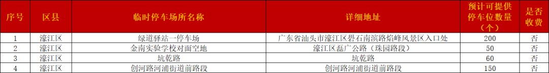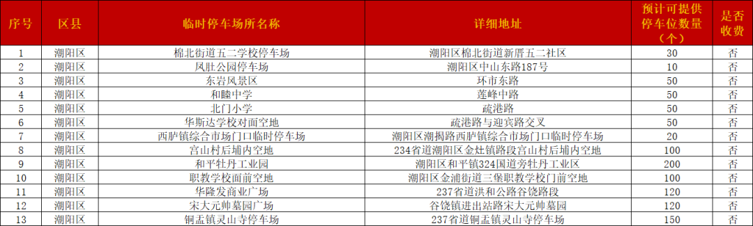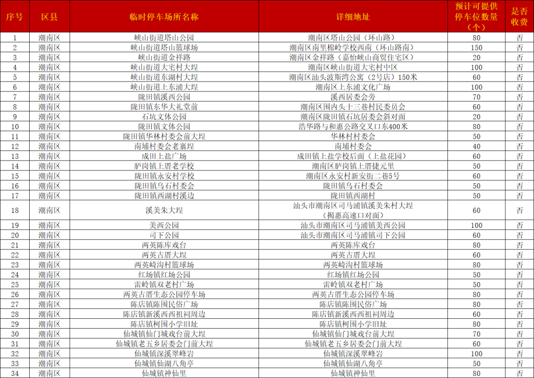 春节假期将至,为方便外地来汕游客和广大市民群众休闲出行停放车辆,确保节日期间道路交通安全畅通,近日,汕头公安各级交管部门结合辖区实际,主动联系各镇(街道)、村(社区),组织摸查辖区内有条件在春节假期期间开放的临时停车场所,因地制宜设置150个临时停车场,共约15034个停车位,为广大群众假期出行创造良好条件。