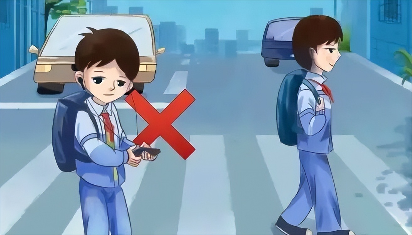 走路要集中注意力,不做“低头族”。横过道路时要走人行斑马线,不在汽车临近时突然横穿马路、不得翻越隔离护栏。