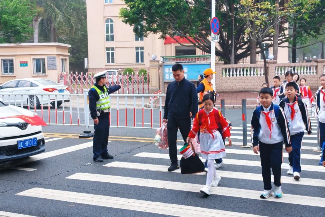 上下学高峰期,校园周边车流人流密集,交通疏导刻不容缓。汕头交警提前谋划、精准施策,结合各学校周边道路实际,制定个性化交通疏导方案,因地制宜推出实招硬招缓解交通压力。