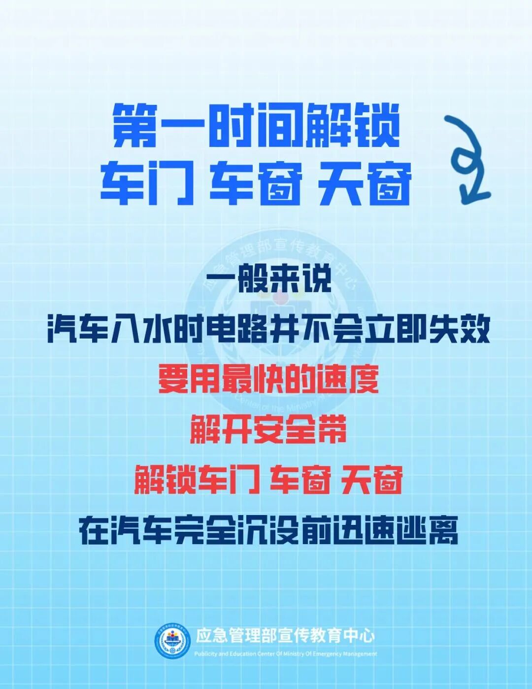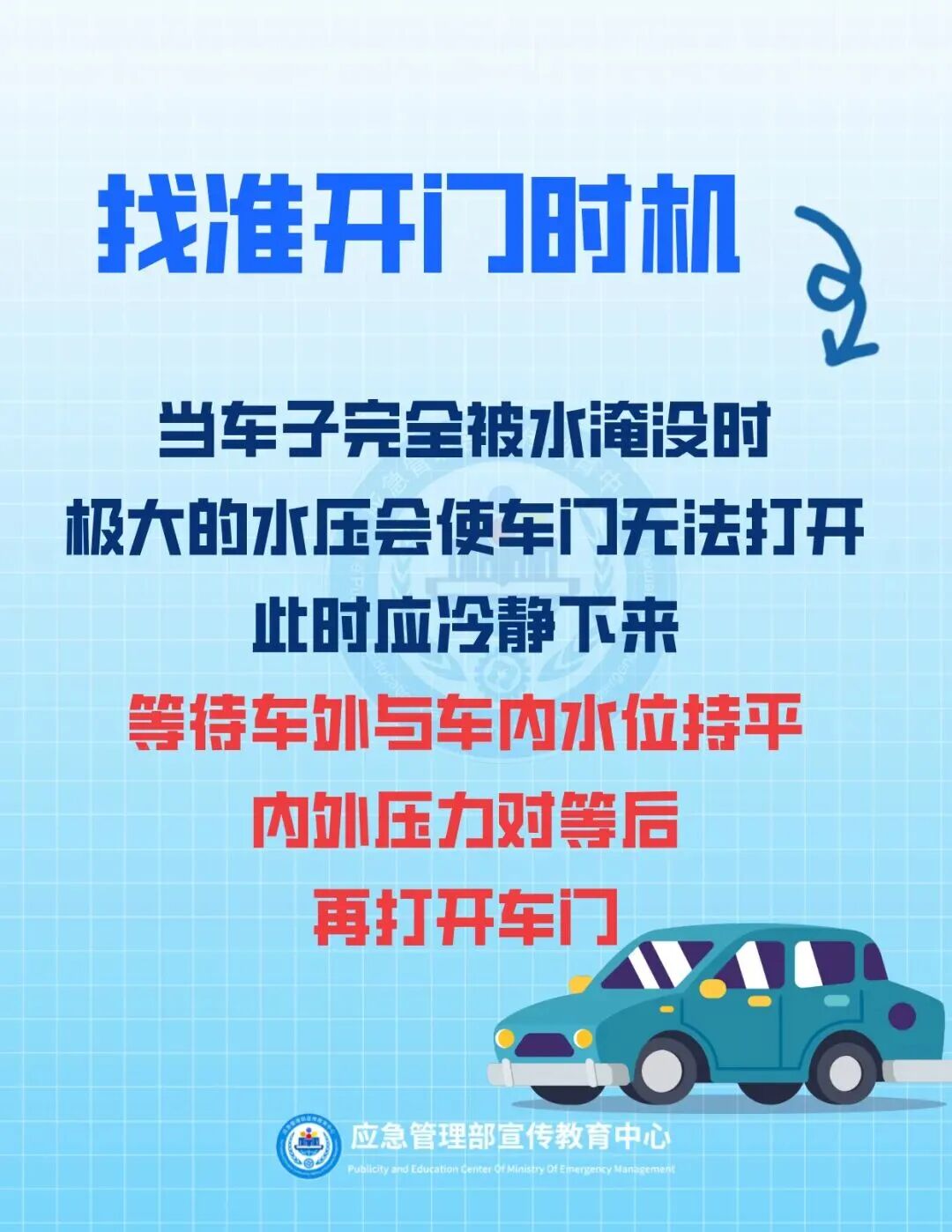 抓住逃生自救的黄金时间打开车门和车窗逃生。