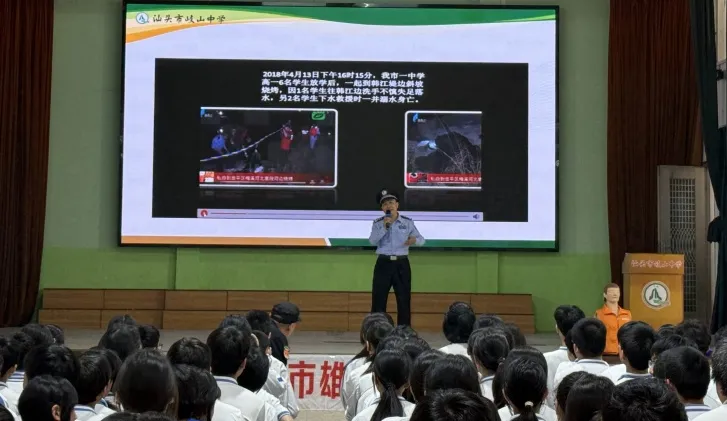 为进一步筑牢校园防溺水安全防护屏障,提高学生水上安全防范意识和自我保护能力,4月20日上午,汕头市公安局港航分局巡防大队联合雄鹰救援队走进岐山中学,在大礼堂为学生们送上一堂以“防溺水安全知识进校园”为主题的水上安全教育课。