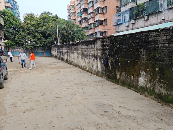 4月1日,应金砂街道要求,我中心再次落实城区公路事务中心对该处进行综合整治,清除卫生死角垃圾杂物杂草,平整土地,重新铺筑垫层,压实地面,同时对周边环境卫生进行整治。