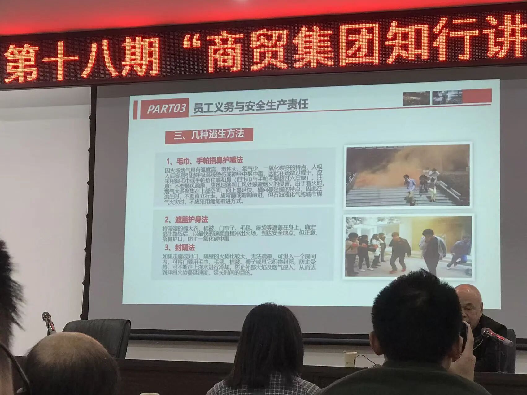 为提升员工专业能力,消防宣传月期间,市商贸集团本部结合“知行讲堂”活动,邀请汕头市冷冻厂有限公司技术设备部副主任卢荣宣同志,为集团内部的干部职工举办消防安全知识讲座。此外,下属企业也联合开展了消防安全专题培训,组织观看消防安全警示教育片等一系列活动。培训围绕典型火灾案例分析、日常火灾隐患排查、火场逃生自救技巧等内容展开,通过视频播放、图文讲解和互动问答等形式,深入浅出地普及消防安全知识。参训员工纷纷表示,培训内容贴近实际,进一步增强了自身的消防安全责任意识和防范能力。
